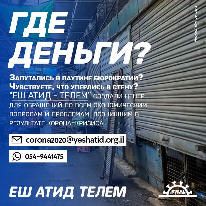 В свете неспособности правительства Нетаниягу справиться с эпидемией коронавируса и в связи с тем, что израильские граждане не уверены в способности министров правительства вывести страну из кризиса и обеспечить улучшение ситуации, партия «Еш Атид-ТЕЛЕМ» создала колл-центр для обращений по всем экономическим вопросам и проблемам, возникшим из-за корона-кризиса.